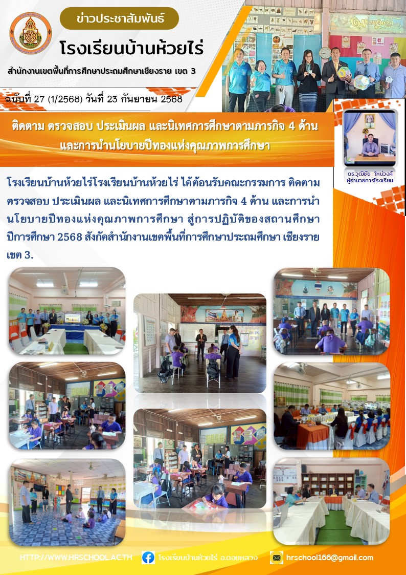 ติดตาม ตรวจสอบ ประเมินผล และนิเทศการศึกษาตามภารกิจ 4 ด้าน และการนำนโยบายปีทองแห่งคุณภาพการศึกษา